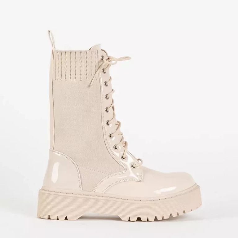 - Stilingi krepšiai iš lakinės ekologiškos odos ir elastingo audinio. Kailinė kojinė. Suvarstomas modelis. Pastaba: ant gaminio medžiagos yra klijų pėdsakų.