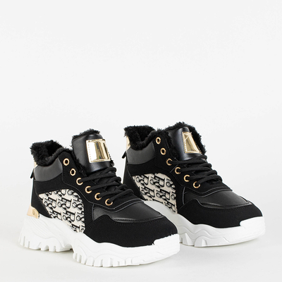 Juodi Renoli moteriški sportiniai bateliai su kailiu - Avalynė