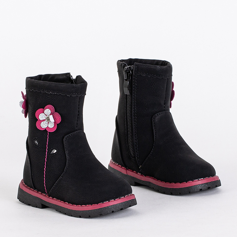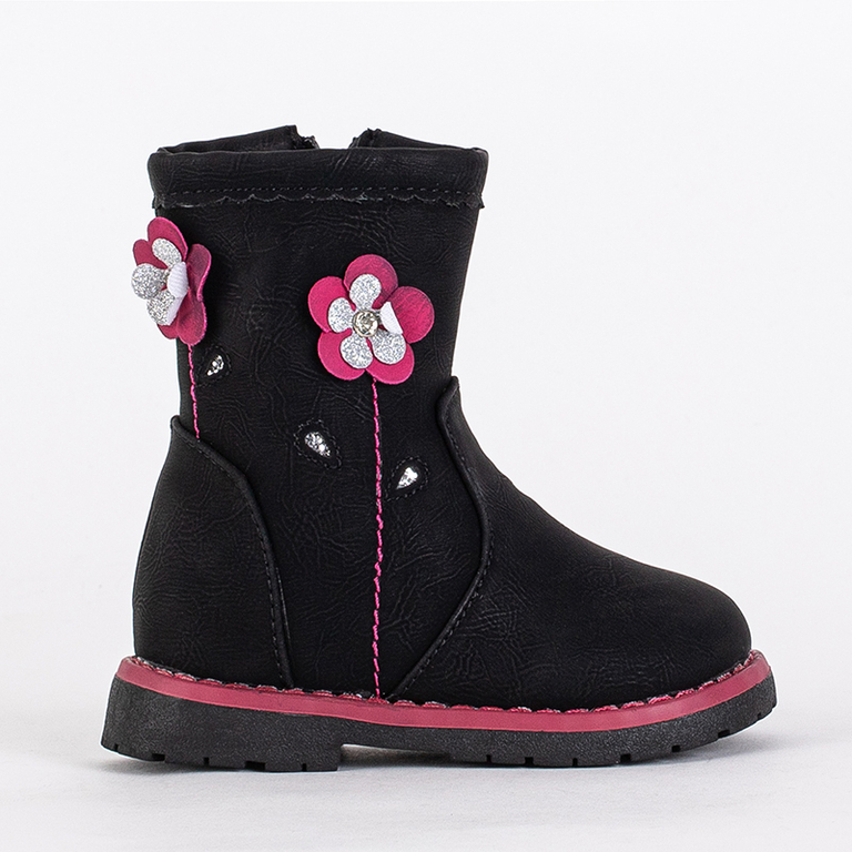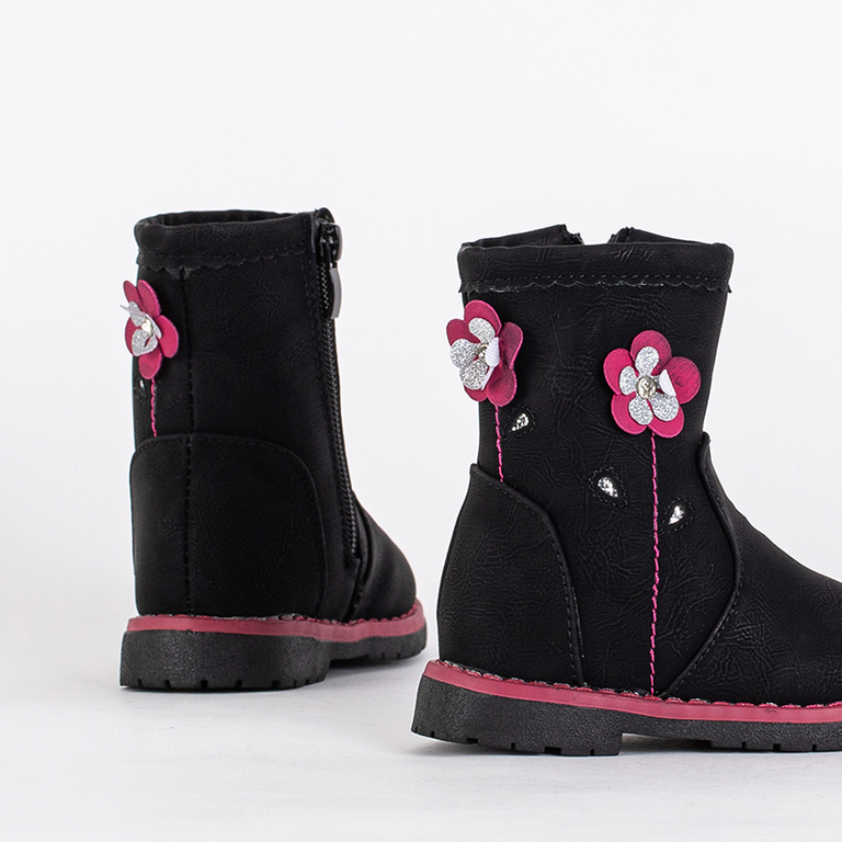 • Mergaičių batai iš ekologiškos matinės odos. Apšiltintas šiltu avikailiu, užsegamas užtrauktuku. Viršus papuoštas rožinėmis gėlėmis!