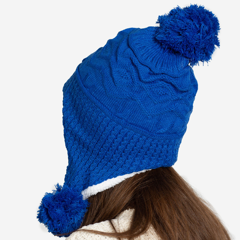 Moteriška kobaltu izoliuota kepurė su pomponais - Priedai
