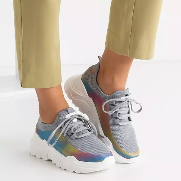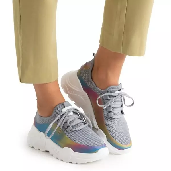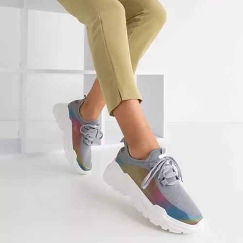 OUTLET Pilki moteriški sportbačiai su įvairiaspalviu intarpu Isis - Avalynė