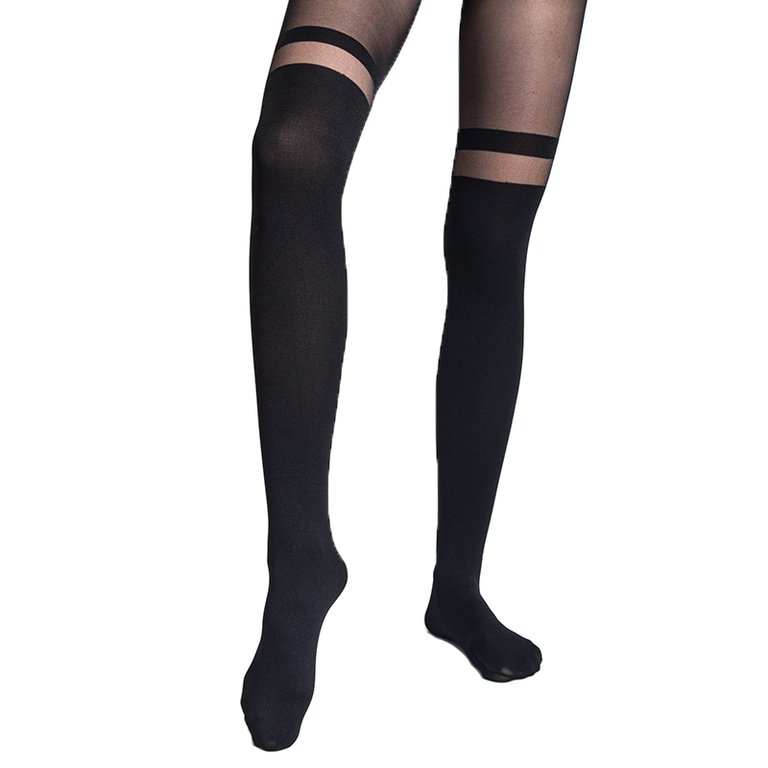 • Moteriškos juodos pėdkelnės. Viršutinė modelio dalis 40D storio, apatinė - 100D. Jie turi juosmenį liekninančią vidutinio slėgio diržą, dėl didelio elastingų skaidulų kiekio puikiai formuoja koją.
