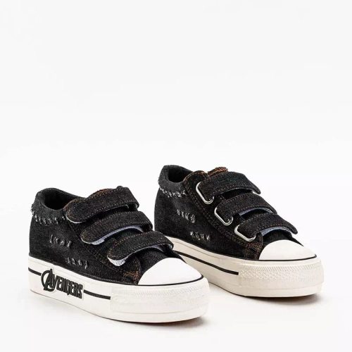 - Moteriški sportbačiai su kambariniu pleištu, iš medžiaginės medžiagos a'la džinsai. Modelis užsegamas 3 Velcro lipdukais, turi medžiaginį įdėklą ir guminį padą. Šie batai pakels jūsų figūrą! Pastaba: ant gaminio medžiagos yra nešvarumų.
