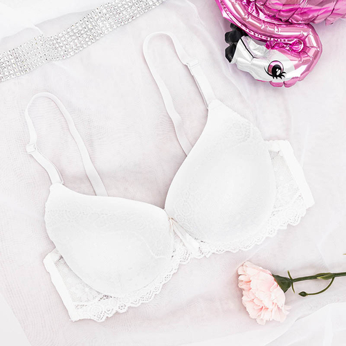 Ecru moteriška push-up liemenėlė su nėriniais - Apatiniai drabužiai