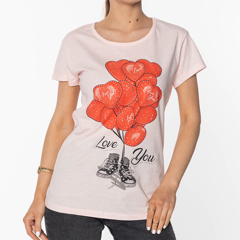 Moteriški rožiniai marškinėliai marginti BALLOON - Drabužiai