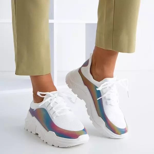 Białe sneakersy damskie z wielokolorową wstawką Isis - Obuwie