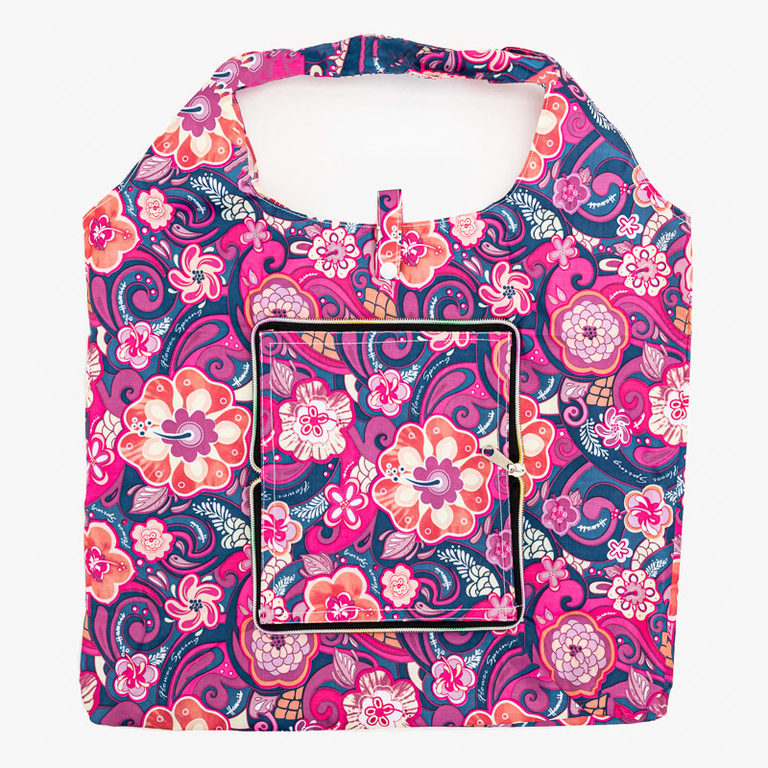 - Medžiaginis pirkinių krepšys, kuris gali būti sulankstytas ir užsegamas užtrauktuku. Gaminys su viena papildoma kišene ir sagute.