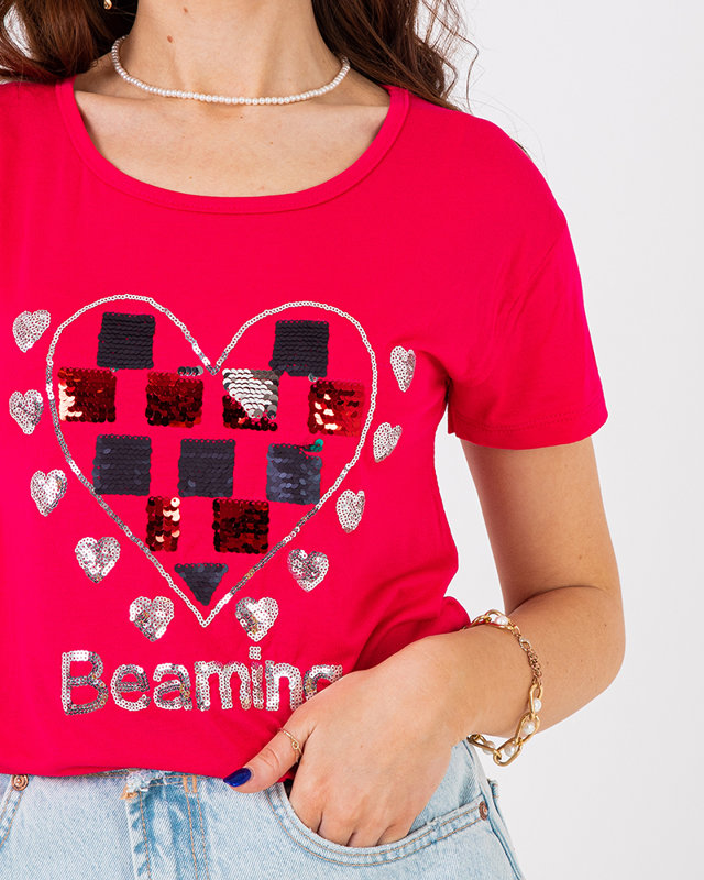 Fuksijos spalvos moteriški marškinėliai su raštu - Drabužiai