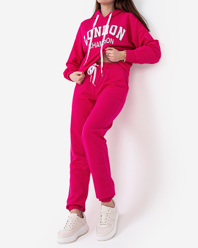 Fuksijos spalvos moteriškas sportinis prakaito komplektas- drabužiai
