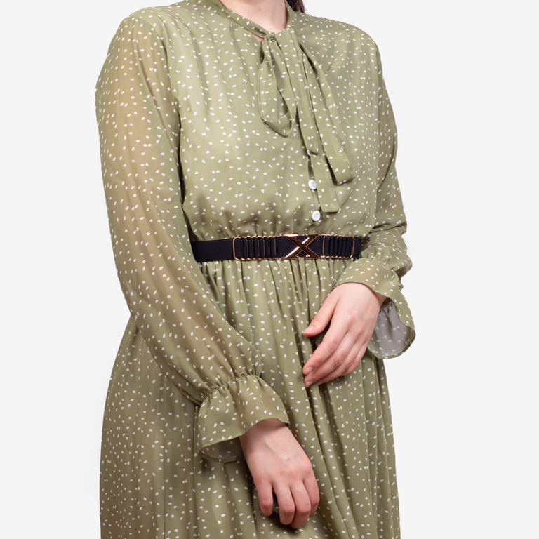 • Unikalus moteriškas diržas su metaliniu ornamentu, užsegamas nugaroje kabliuku. Modelis pagamintas iš elastingos gumos ir metalo derinio. Puikiai pabrėžia bet kokį kasdienį stilių!