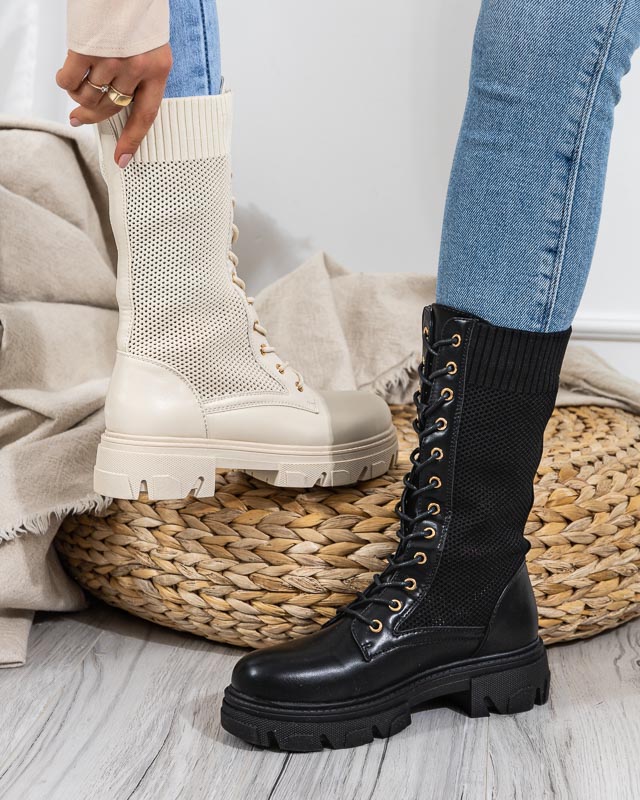 Ažūriniai juodi moteriški suvarstomi aulinukai Buhomi - Avalynė