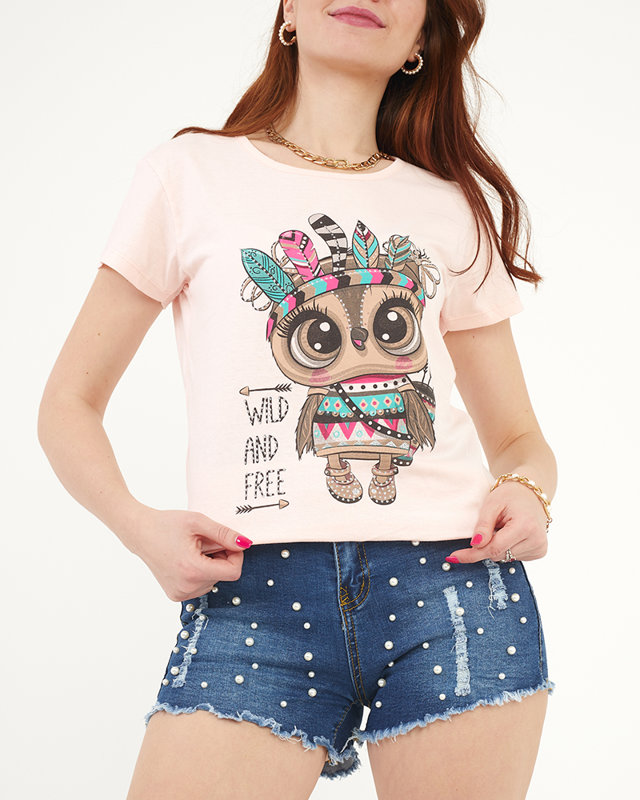 Moteriški rožiniai marškinėliai su raštu - Drabužiai