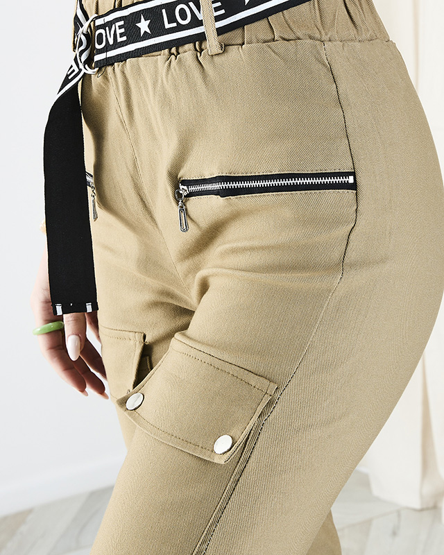 Smėlio spalvos moteriškos cargo kelnės su kišenėmis - Drabužiai