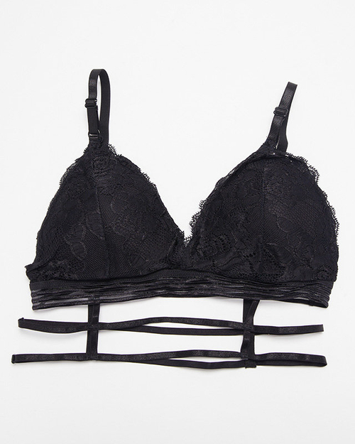 Moteriška juoda liemenėlė su nėriniais ir dryžiais - Apatiniai