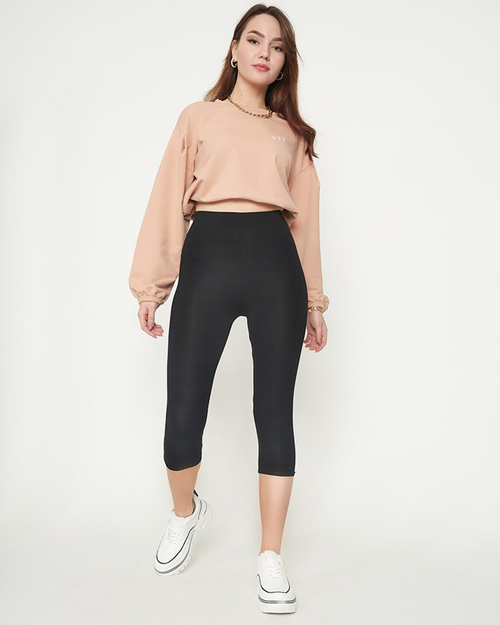 - Klasikiniai trumpi moteriški antblauzdžiai aukštu juosmeniu ir elastine juostele. 3/4 ilgio kojos. Minkšta, lanksti medžiaga užtikrina išskirtinį naudojimo komfortą. Puikiai tinka rytiniam bėgiojimui ar sporto salėje!