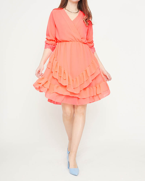 - Fantastiška moteriška mini suknelė. Modelis su V formos iškirpte turi 3/4 rankoves su nėriniais. Lengva vasarinė suknelė puošta klostytais, turi pamušalą ir ties juosmeniu prisiūta elastine juostele. PASTABA: Matavimo tikslumas (+/-) 1 cm.