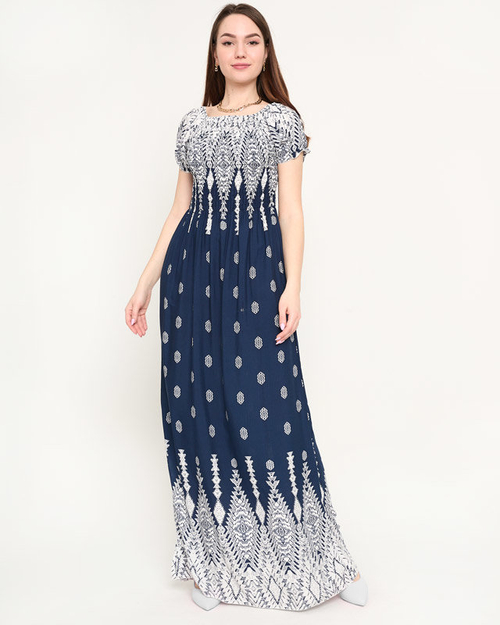 Moteriška tamsiai mėlyna raštuota maksi suknelė - Drabužiai