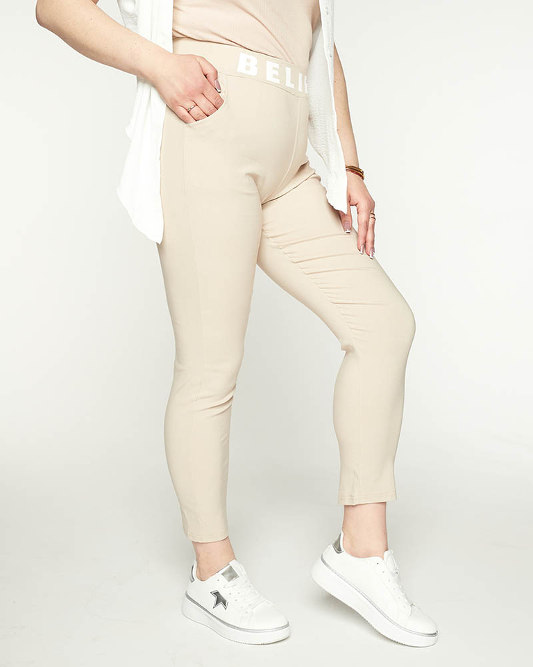 Moteriškos smėlio spalvos audinio kelnės - Drabužiai