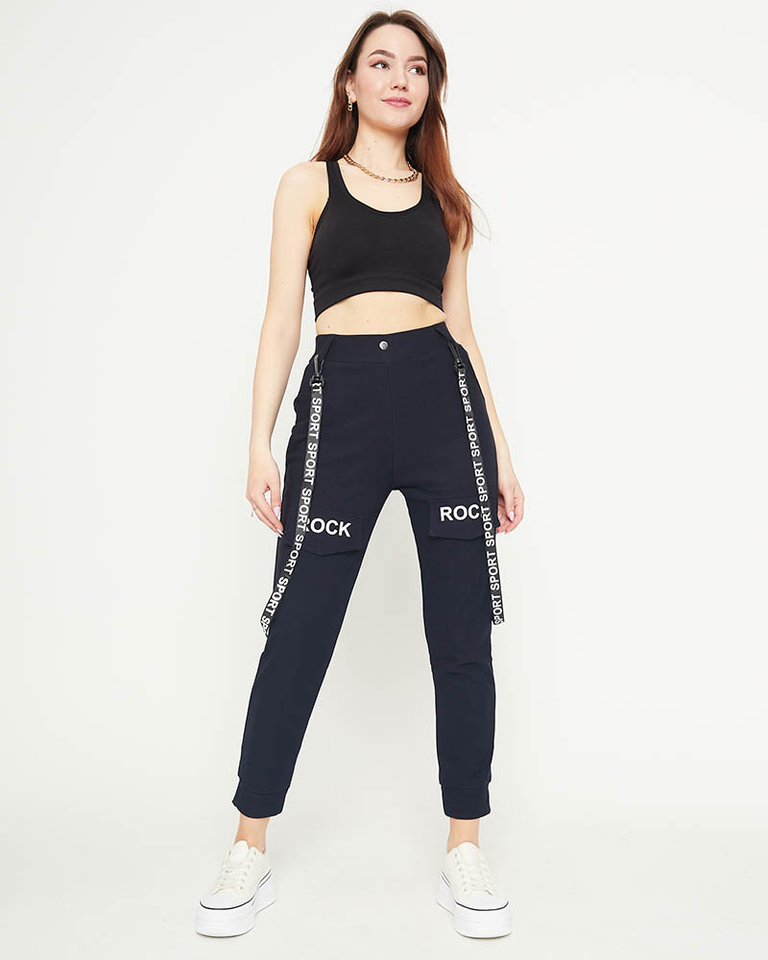 Tamsiai mėlynos moteriškos krovininės kelnės su petnešėlėmis - Drabužiai