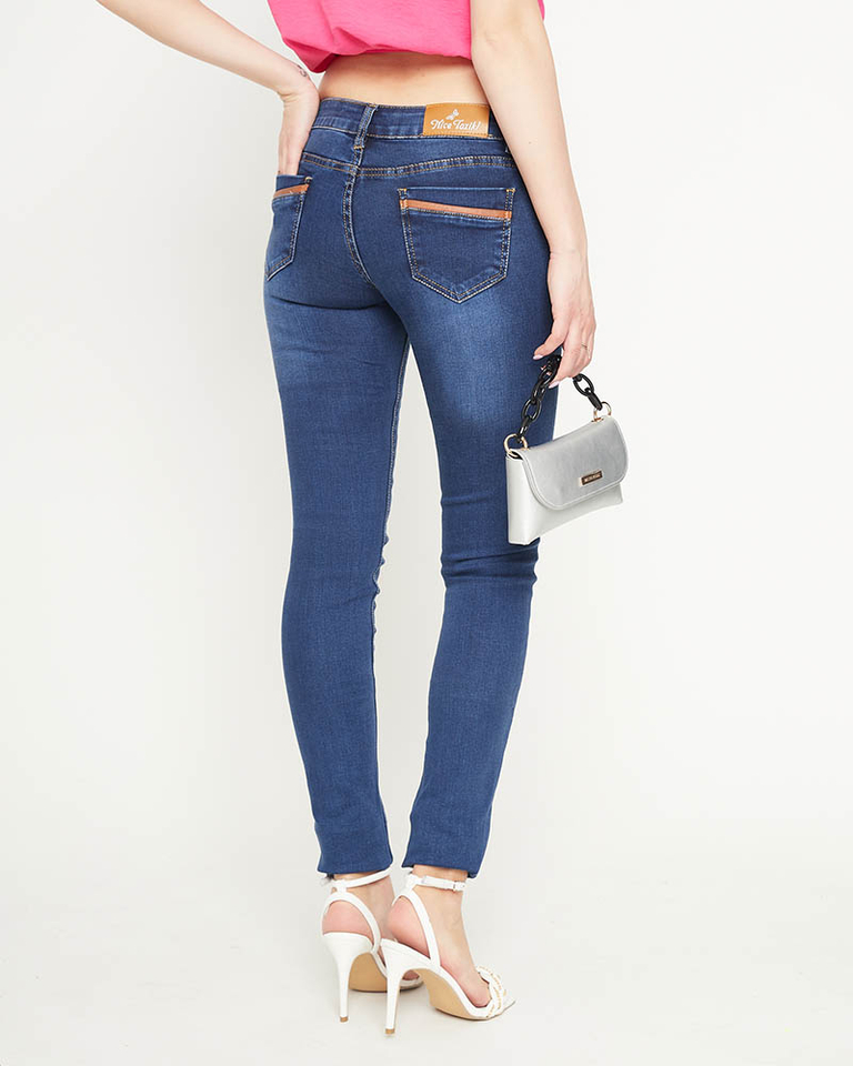 • Klasikiniai moteriški siauri džinsai žemu juosmeniu iš tamprios medvilnės audinio. Modelis turi keturias kišenes, užsegamą užtrauktuku ir sagomis. PASTABA: matavimo tikslumas (+/-) 1 cm.