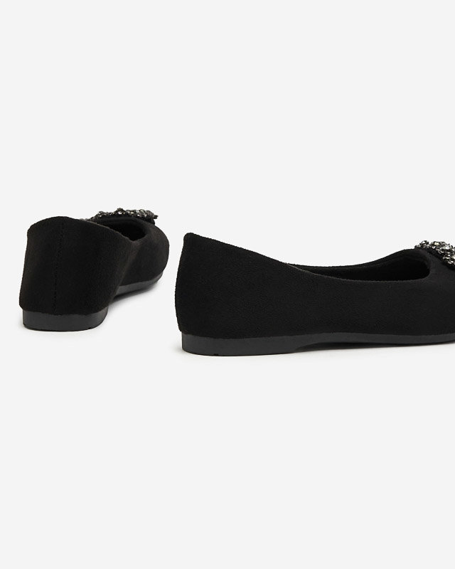 Juodos moteriškos eko zomšos balerinos su Linselisa dekoracija - Avalynė