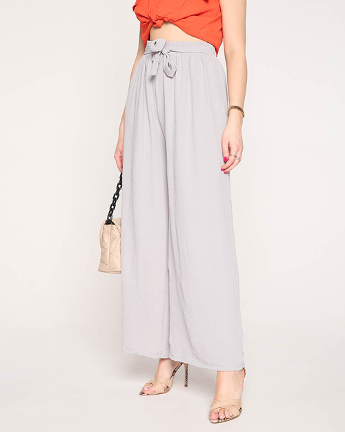 Moteriškos plačios palazzo kelnės šviesiai pilkos spalvos - Drabužiai