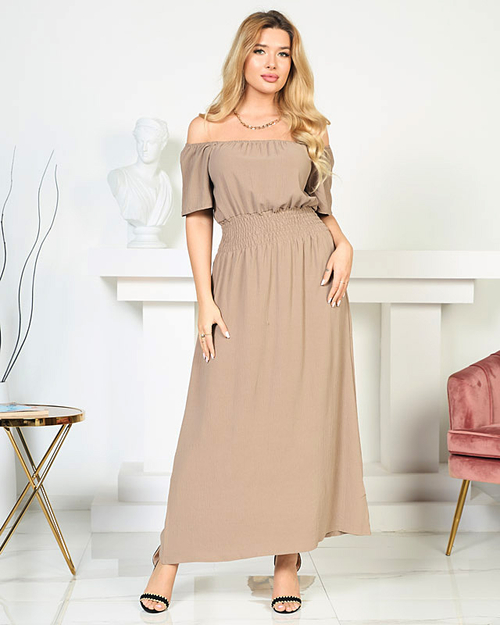 Šviesiai ruda midi suknelė su elastingu juosmeniu - Drabužiai