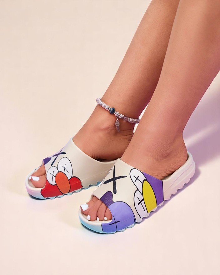 - Patogios moteriškos šlepetės iš guminės medžiagos. Įdomus spaudinys prideda stiliaus!