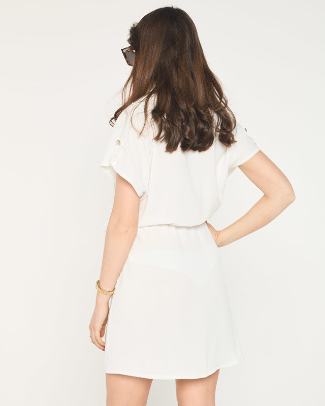 Moteriška balta mini suknelė su kaklaraiščiu - Drabužiai