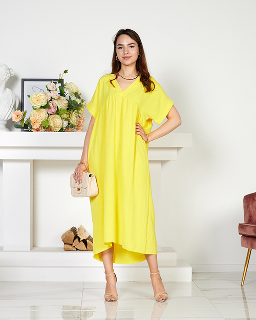 Moteriška geltona paplūdimio suknelė, midi ilgis - Drabužiai