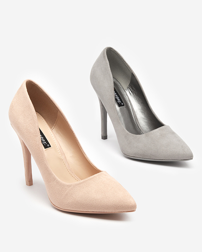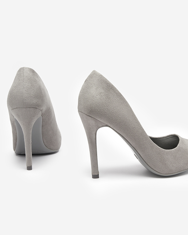 Pilkos spalvos moteriškos ekologiškos zomšos pompos ant aukšto kulno Menitik - Drabužiai