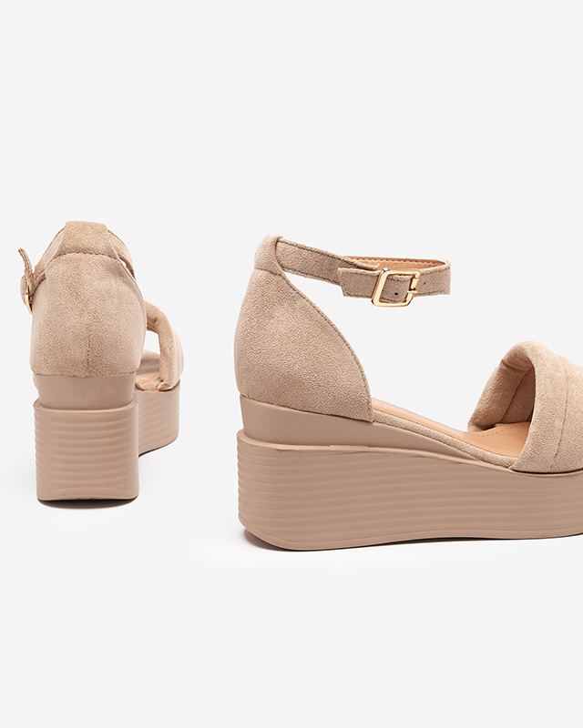 OUTLET Smėlio spalvos moteriškos pleištinės basutės Okita - Avalynė