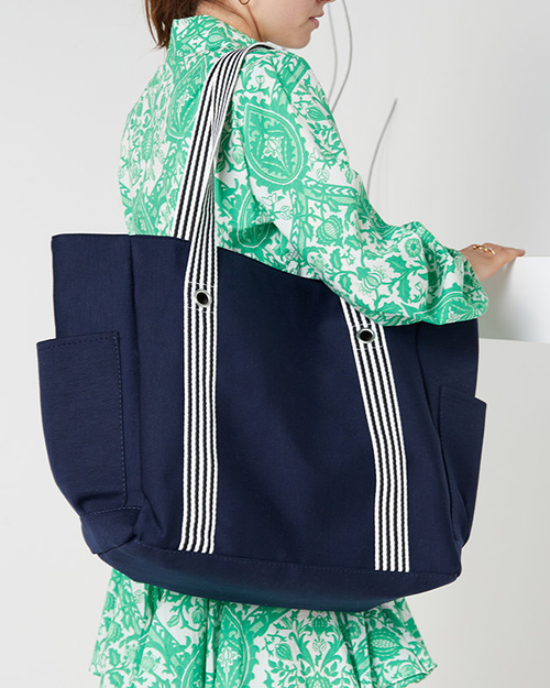 Tamsiai mėlyna moteriška paplūdimio krepšys su šoninėmis kišenėmis - Priedai