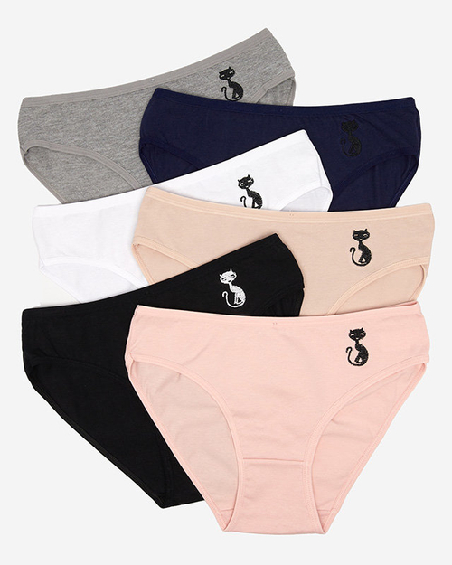 Medvilninių moteriškų kelnaičių komplektas su išsiuvinėtu katinu - Apatiniai