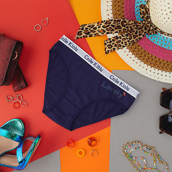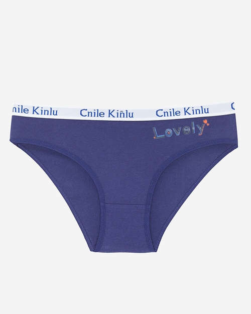 Tamsiai mėlynos moteriškos kelnaitės su užrašais - Apatiniai