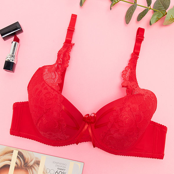 Raudona moteriška liemenėlė su nėriniais - Apatiniai rūbai