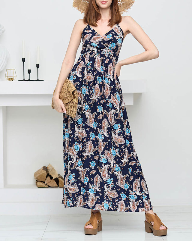 Tamsiai mėlyna erdvi moteriška maksi suknelė - Drabužiai