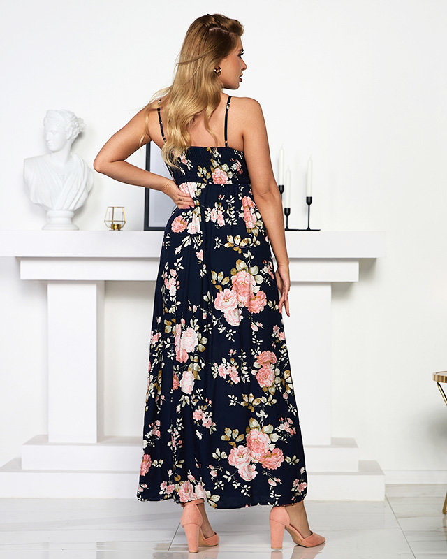 • Erdvi moteriška suknelė iki kulkšnių su gražiu gėlių raštu. Pagaminta iš plono medvilninio audinio. Modelis ant plonų reguliuojamų petnešėlių, po krūtine suveržiama juostele. PASTABA: Matavimo tikslumas (+/-) 1 cm.