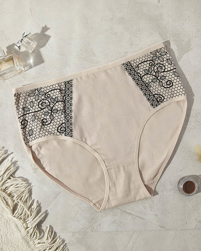 Smėlio spalvos medvilninės moteriškos kelnaitės su raštu PLUS SIZE - Apatinis trikotažas