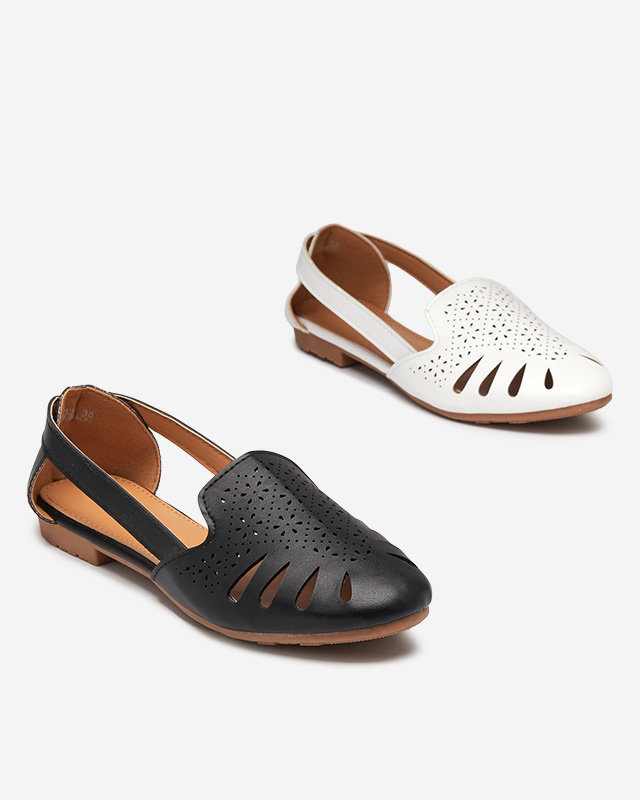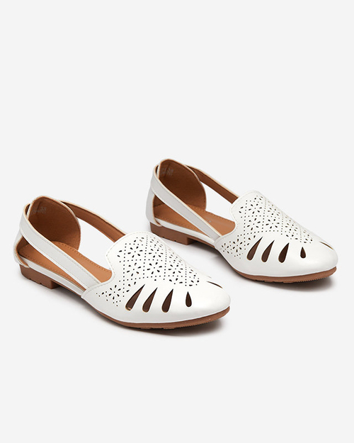 Moteriškos baltos ažūrinės balerinos su kirpimu šonuose Sermo- Avalynė