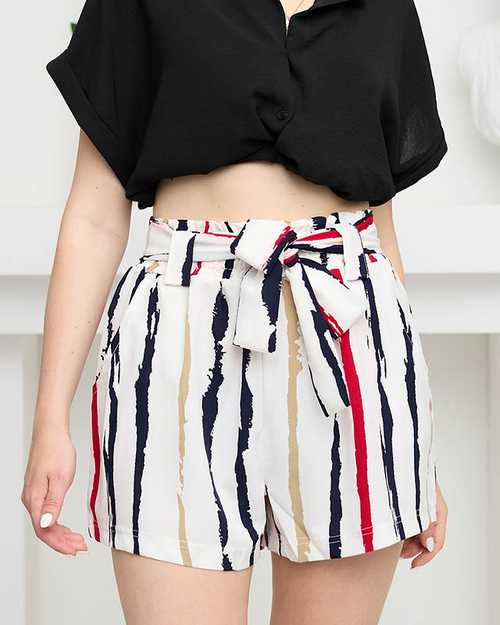 Moteriški balto dryžuoto audinio šortai - Drabužiai