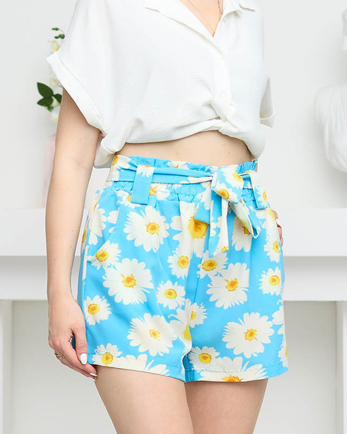 Moteriški mėlyno rašto audinio šortai su gėlėmis - Drabužiai