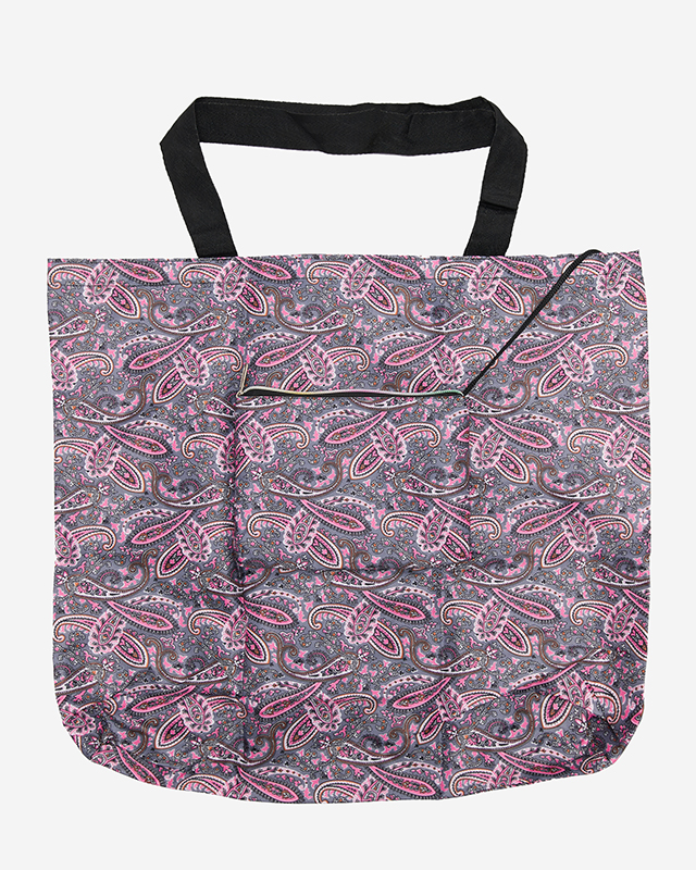 Pilkos ir rožinės spalvos sulankstomas pirkinių krepšys su paketėliu ir gėlių raštu - Priedai