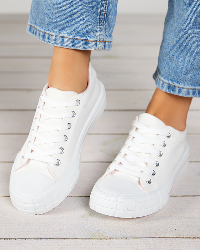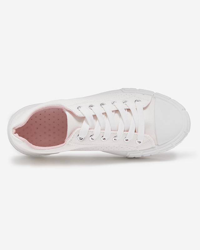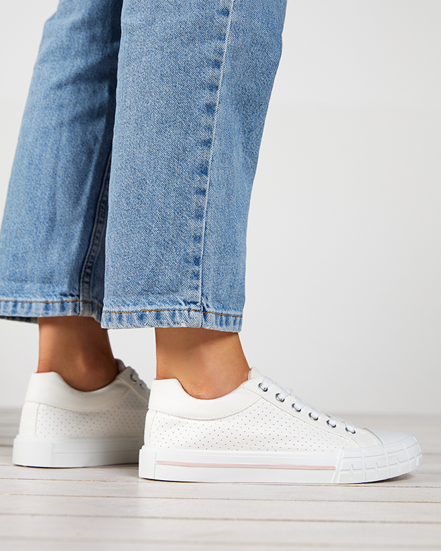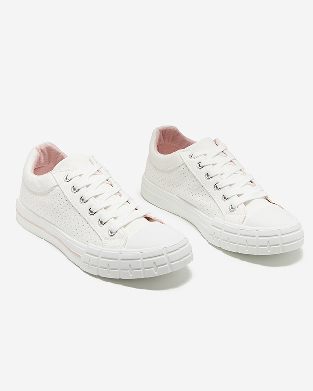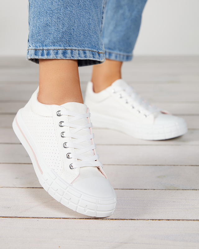Balti moteriški sportbačiai su rožine juostele Sols- Avalynė