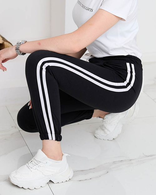 Moteriškos juodos sportinės kelnės su dryžiais - Drabužiai