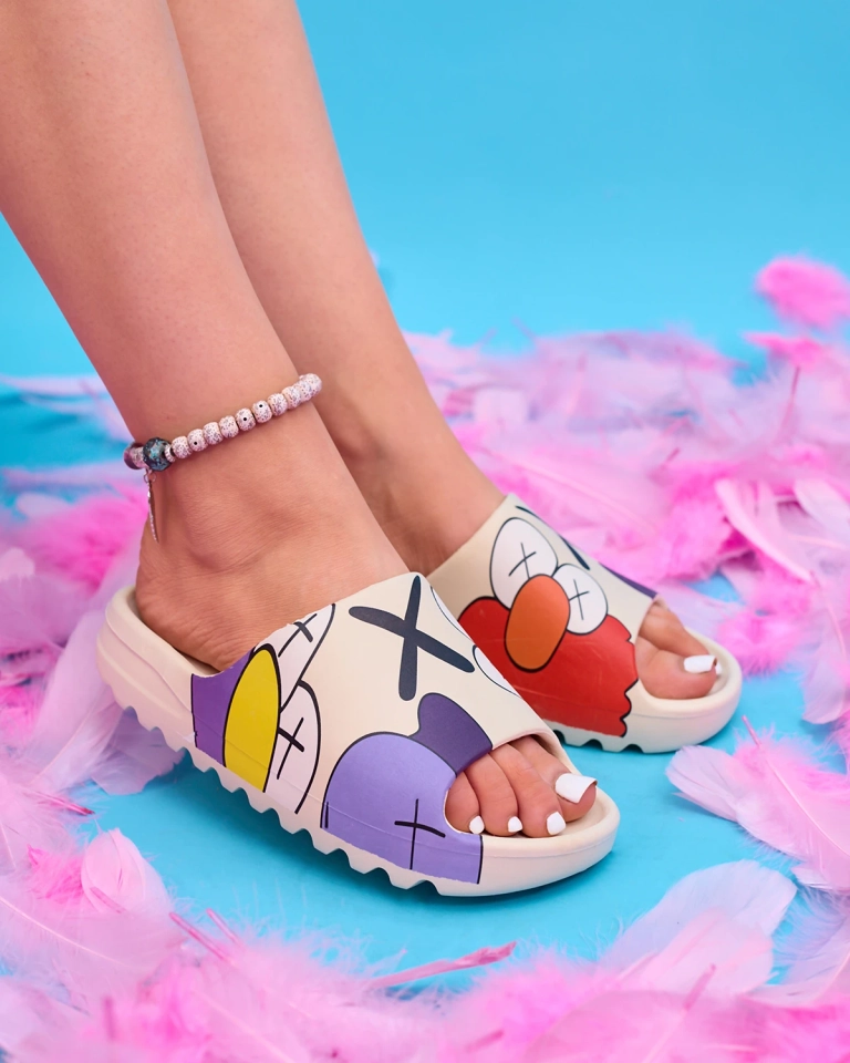 - Patogios moteriškos šlepetės ant žemo pado, visiškai pagamintos iš guminės medžiagos. Modelis pasakos tema!