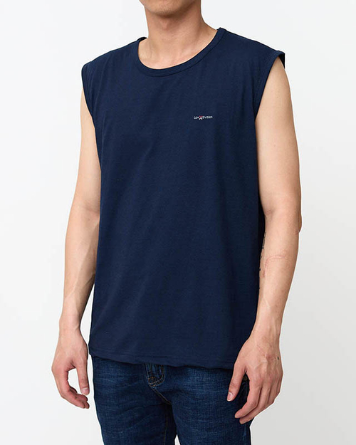 Vyriški tamsiai mėlyni marškinėliai be rankovių - Drabužiai
