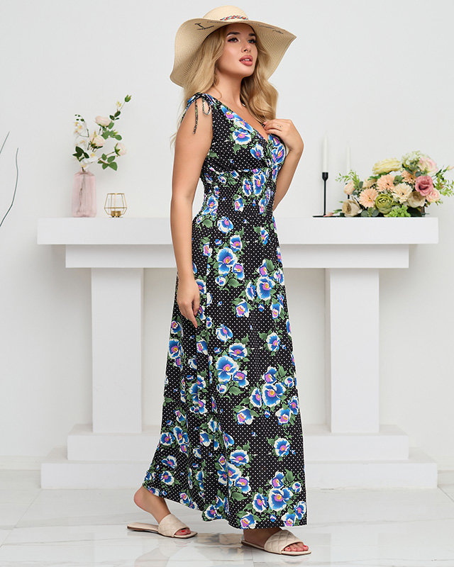 Moteriška juoda maksi suknelė su mėlynomis gėlėmis - Drabužiai