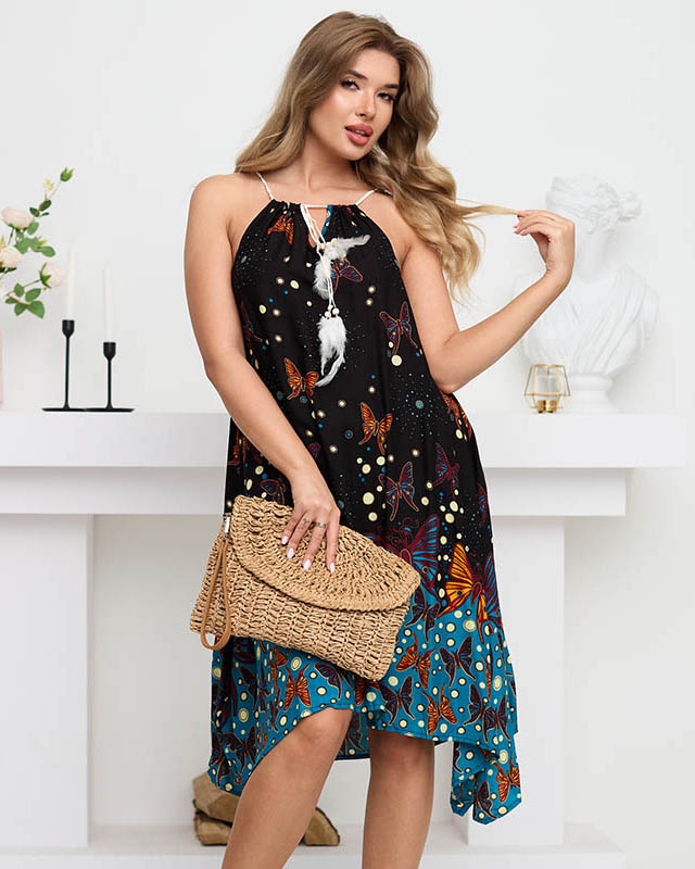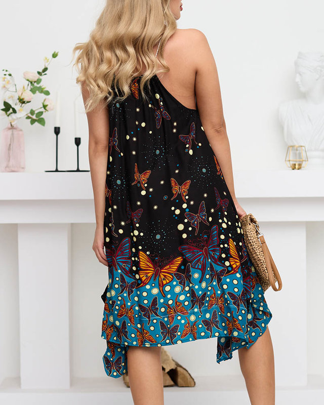Moteriška juoda vasarinė suknelė su drugeliais - Drabužiai