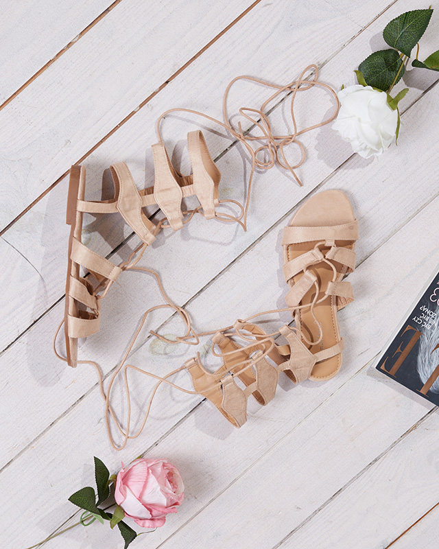 Smėlio spalvos gladiatorių sandalai iki blauzdos vidurio Eliko- Buty